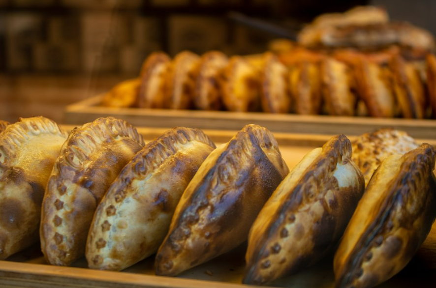 While the empanada did not originate in Argentina (that honor belongs to Spanish Galicia, as early as the 1520s), the empanada has nonetheless been a longtime staple of the country’s cuisine, often served during celebrations as a starter or main course. Preparation is fairly simple: a filling consisting of meat, cheese, vegetables, or additional ingredients is folded into a circle of dough and closed by kneading the seam, creating a pocket (The word empanar, from which empanada is derived, means “to [coat with] bread”). These pockets are then baked or fried to a golden crisp, and served hot. Similar pastries can be found all over the world, such as the South Asian samosa or the Italian calzone.